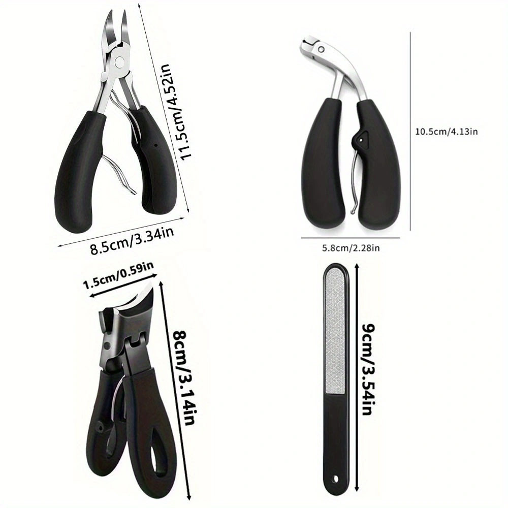 Discover the ultimate solution for ingrown toenails with this 4-piece Ingrown Toenail Clipper Set, specifically designed for thick nails. Crafted with heavy-duty, podiatrist-grade stainless steel blades, this set ensures precision and durability, making it a reliable tool for tackling even the toughest nails. The ergonomic, easy-grip handle provides superior control and comfort, reducing hand fatigue during use. Whether you're dealing with ingrown toenails, thick nails, or general nail care, this set is perfect for men and adults seeking professional-grade results at home. Each clipper is designed to provide clean, precise cuts, helping to prevent further irritation and promote healthy nail growth. The set includes four essential tools to address various nail care needs, making it a comprehensive solution for maintaining foot health. Easy to clean and maintain, these clippers are built to last, offering long-term value and performance. Ideal for personal use or as a thoughtful gift for someone in need of effective nail care tools, this Ingrown Toenail Clipper Set is a must-have for anyone prioritizing foot hygiene and comfort. Experience the difference with professional-grade tools that deliver results you can trust.