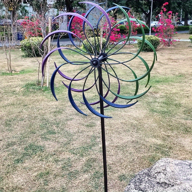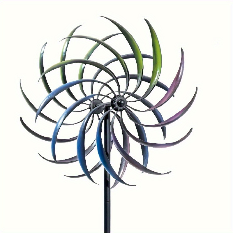 Enhance your outdoor space with our Large Metal Wind Spinner, a vibrant and dynamic addition to any garden or yard. This eye-catching kinetic sculpture features a dual-blade design that spins smoothly in the breeze, creating a mesmerizing 360° rotation. The spinner's colorful, weather-resistant finish ensures it remains bright and beautiful through all seasons, adding a lively touch to your landscape. Crafted from durable metal, this wind spinner is built to withstand outdoor elements, providing long-lasting enjoyment without the need for batteries or maintenance. Its sturdy construction and balanced design allow for effortless spinning, even in gentle winds. Perfect for gardens, patios, or lawns, this decorative windmill sculpture not only adds visual interest but also brings a sense of movement and tranquility to your outdoor environment. Whether you're looking to attract birds, create a focal point, or simply enjoy the soothing motion, this wind spinner is a versatile and elegant choice for outdoor decor. Easy to install and battery-free, it’s an eco-friendly way to elevate your yard’s aesthetic. Transform your outdoor space into a lively and artistic retreat with this stunning wind sculpture.