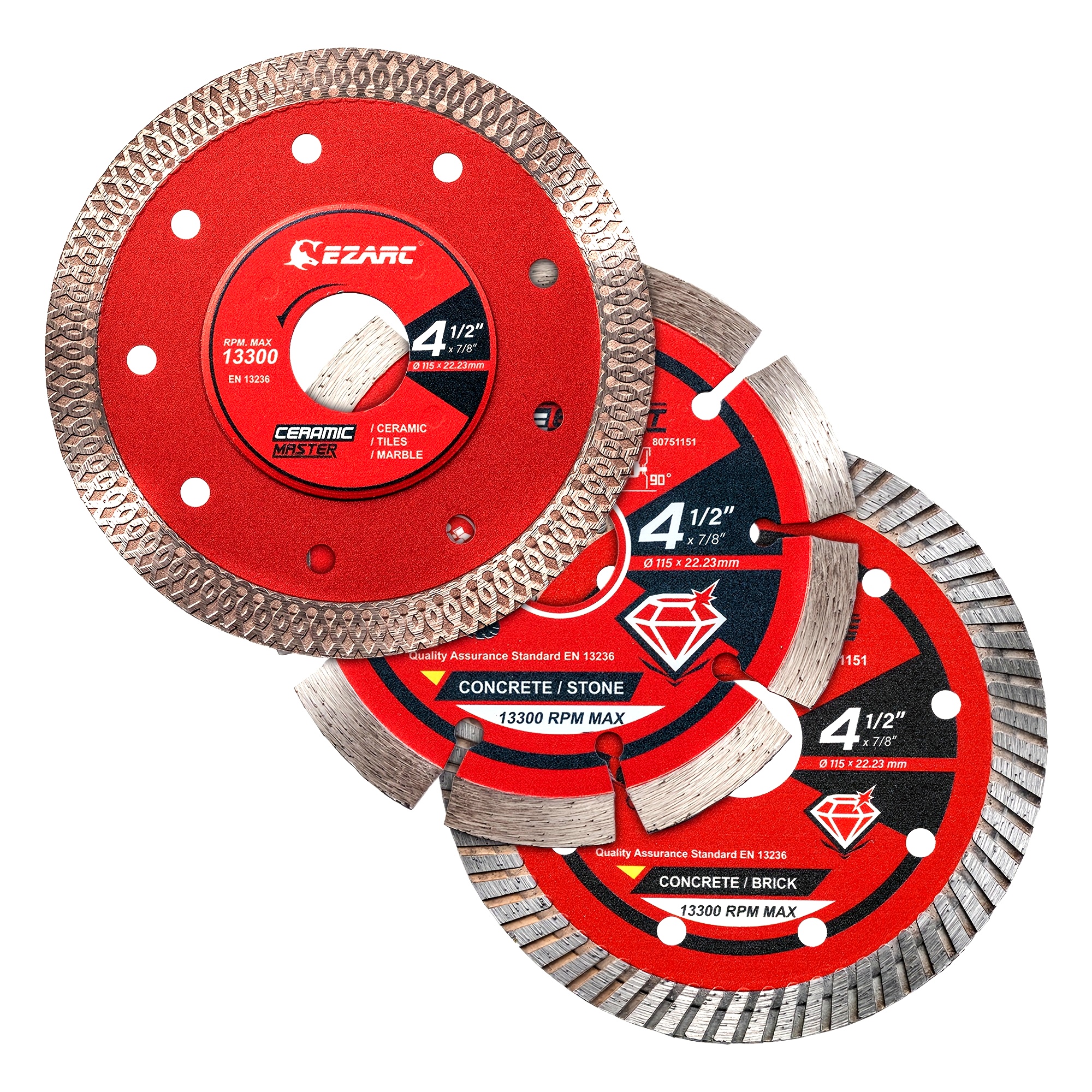 [EZARC Diamond Saw Blades] 3-Mix Pack EZARC Diamond Saw Blades - 4.5 Inch Cutting Stone, Marble, Granite, Concrete, Porcelain, Ceramic, Tile Material